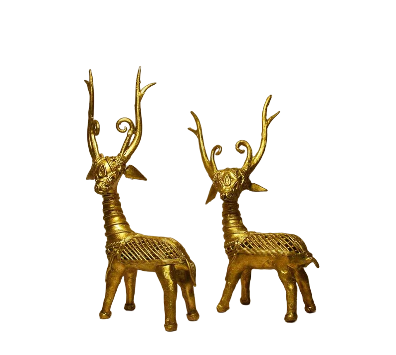 Dokra art is a centuries-old metal casting technique that originated in India and is still practiced today by artisans from the Dokra tribe. The process involves creating a wax model that is coated in clay to create a mold, which is then filled with molten metal, typically brass or bronze. Once cooled and polished, the final product features unique designs and a distinctive rustic finish. Dokra art is often known for its rustic charm and intricate designs, with motifs inspired by depicting nature, mythology, and everyday life, and has become increasingly popular around the world for its intricate craftsmanship and cultural significance. Despite the popularity of mass-produced items, Dokra art remains a testament to the beauty and value of traditional handcrafted art forms. The art form has been passed down through generations and is still practiced by many artisans in different parts of India.